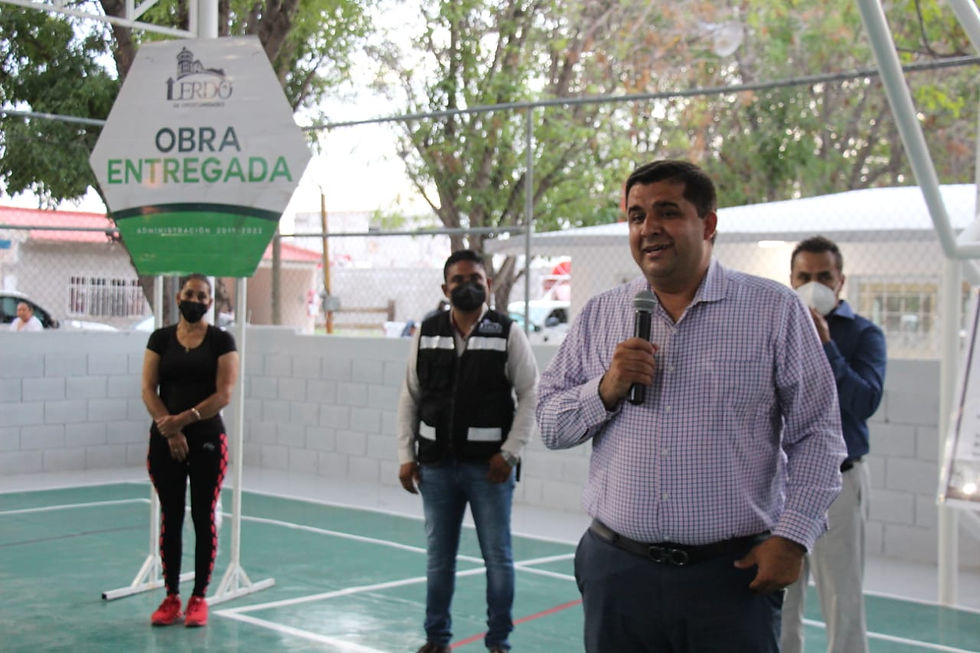 El Presidente Municipal Homero Martínez Cabrera, realizó el martes por la tarde, la entrega oficial de la rehabilitación de la plaza principal de la colonia 5 de Mayo, una de los espacios públicos más importantes del municipio, que cuenta con una cancha de usos múltiples, área de juegos infantiles, salón recreativo, área de ejercicios y baños públicos, con una inversión de 657 mil 664 pesos del recurso municipal 2021.