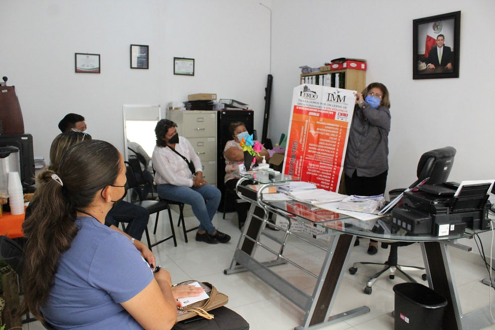 Esta mañana, la directora del Instituto Municipal de la Mujer, María del Refugio Adame Güereca, se reunió con los jefes de cuartel y presidentes de villa para dialogar e invitarlos a ser partícipes de las actividades que se llevarán a cabo en el mes de octubre. Primeramente, se abordó el tema del Día Internacional de las Mujeres Rurales, que será el viernes 15 de octubre, mismo día en que se realizará una feria en el Paseo Sarabia en punto de las 10:00 de la mañana para brindar servicios y actividades de manera gratuita a las mujeres del área rural. Así mismo se les hizo una invitación para asistir al encendido rosa de la Presidencia Municipal y el Museo Francisco Sarabia, de igual manera, acercar a la población femenina para recibir el servicio gratuito de mastografías o agendar directamente su cita al teléfono 87 11 59 26 46. La funcionaria agradeció el compromiso de los asistentes y los exhortó a reforzar las acciones para la atención, prevención, sanción y erradicación contra la violencia de género en el municipio de Lerdo, exponiendo la importancia de difundir la campaña “Por ti, por mí, por todas” y el violentómetro. “Los invitamos para que hagan partícipe a su gente, a su comunidad, y que nos ayuden a formar comités” dijo la titular del IMM. Como medida preventiva ante el COVID-19, durante esta primera reunión, únicamente estuvieron presentes los representantes las villas La Loma, Nazareno, León Guzmán, y de las comunidades La Campana, Nazareno III, Picardías, y Los Ángeles. Posteriormente se realizará una nueva junta con los comisariados y presidentes de villa restantes.